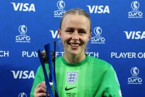 體育資訊7月28日訊 女足歐洲杯決賽,英格蘭女足點球力克西班牙女足,成功實現(xiàn)衛(wèi)冕。效力于切爾西女足的門將漢普頓在點球決戰(zhàn)中撲出兩記點球,她也當(dāng)選了決賽MVP。阿森納女足大將凱莉攻入制勝點球。