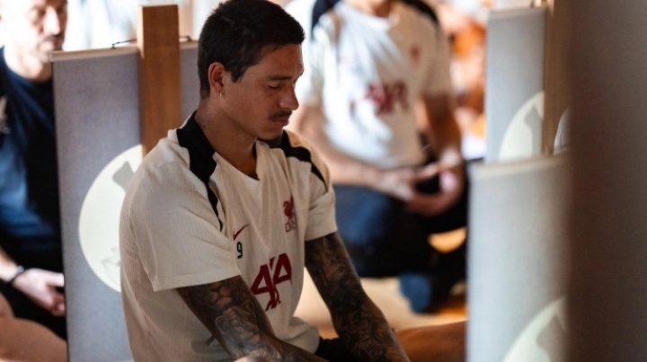 體育資訊07月28日訊 利物浦日本行造訪東京的惠光院,在僧人指導(dǎo)下進(jìn)行早晨冥想。