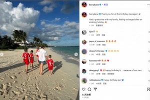 凱恩曬出自己同家人的海邊度假照,并配文:“謝謝大家的生日祝福!??我和家人度過(guò)了愉快的時(shí)光,在經(jīng)歷一個(gè)美好的假期后感覺(jué)精神煥發(fā)?!?/p>