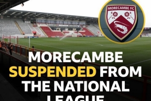 體育資訊7月29日訊 BBC報(bào)道,“大蝦”莫克姆俱樂(lè)部被全國(guó)聯(lián)賽立即停賽,將無(wú)緣新賽季初期賽事。