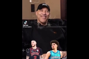 在莫蘭特和兒子朗佐-鮑爾之間,他選莫蘭特。他說(shuō):“哦,你搞錯(cuò)了。當(dāng)然是朗佐-鮑爾。他可是世界上最偉大的控球之神?!?/p>