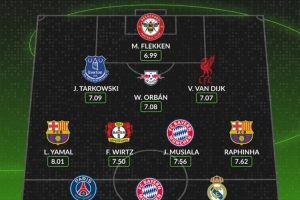體育資訊7月29日訊 whoscored統(tǒng)計(jì)了24-25賽季的五大聯(lián)賽賽季評(píng)分最佳陣容,巴薩、拜仁各2將入圍。