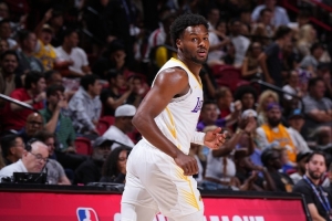 在夏季聯(lián)賽湖人戰(zhàn)勝鵜鶘的比賽中,文森特就坐在場邊。當(dāng)時布朗尼被派去防守鵜鶘的7號秀杰里邁亞-費爾斯,最終費爾斯全場21投5中,并出現(xiàn)了3次失誤。