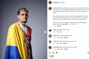 體育資訊7月31日訊 拜仁已經(jīng)官宣從利物浦簽下哥倫比亞邊鋒迪亞斯,后者也通過(guò)社媒曬出簽約照并發(fā)文紀(jì)念: