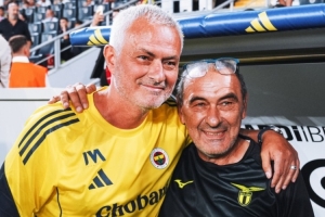 體育資訊7月31日訊 費內巴切和拉齊奧在今日進行友誼賽,兩隊主帥穆里尼奧和薩里也久別重逢。