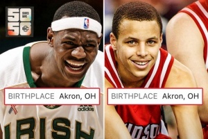 “這場宿命般的對決早已注定,詹姆斯和庫里出生在同一家醫(yī)院——阿克倫市蘇馬醫(yī)院,相隔僅3年多?!盓SPN在配文中如此寫道。