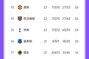 體育資訊01月20日訊 英超第22輪,埃弗頓3-2熱刺,曼聯(lián)1-3布萊頓,諾丁漢森林3-2南安普頓。目前積分榜上,諾丁漢森林44分積分追平阿森納,曼聯(lián)仍居第13,熱刺第15。