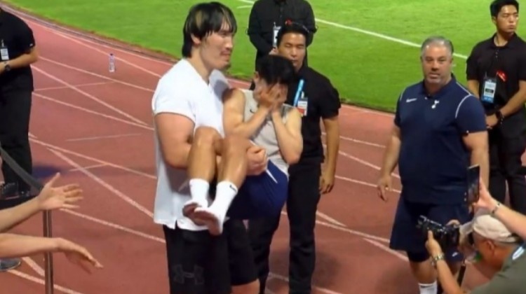 在昨日的媒體活動中,孫興慜和韓國格斗明星崔洪萬見面并進(jìn)行了有趣的互動。身高約2.18米的崔洪萬將孫興慜用“公主抱”的方式抱起,而孫興慜則害羞得捂住了臉。