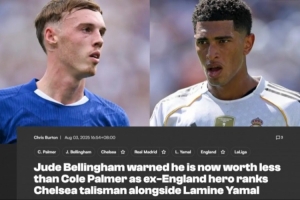 “在現(xiàn)代足球中,球員的轉(zhuǎn)會(huì)費(fèi)經(jīng)常超過(guò)1億英鎊,甚至可能要達(dá)到1.5億英鎊左右,帕爾默就處于這個(gè)價(jià)位區(qū)間。現(xiàn)在的足壇轉(zhuǎn)會(huì)費(fèi)真的太瘋狂了,在我那個(gè)時(shí)代,花100萬(wàn)英鎊買一名球員就已經(jīng)很厲害了?,F(xiàn)在的球員價(jià)格簡(jiǎn)直夸張,像帕爾默和亞馬爾這樣的球員,身價(jià)肯定在1億英鎊以上。”