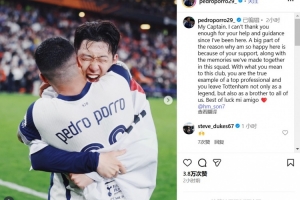 體育資訊8月4日訊 熱刺隊長孫興慜確定離隊,預(yù)計將前往美職聯(lián)加盟洛杉磯FC。對于這樣的球隊傳奇離開,熱刺后衛(wèi)波羅在社交媒體上進(jìn)行了告別。