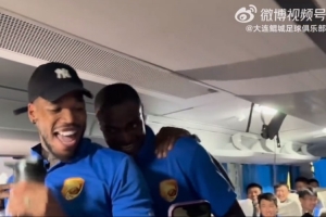本場(chǎng)比賽,穆謝奎梅開二度,薩比爾-穆薩、多米尼克各入一球,幫助大連鯤城取得4-0大勝。賽后,三名外援在球隊(duì)大巴車上跳舞慶祝勝利。