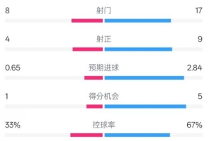全場比賽數(shù)據(jù)如下(曼城在后):