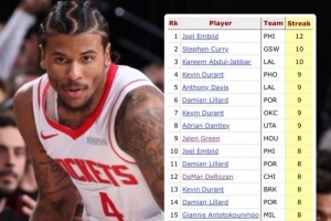 據(jù)統(tǒng)計,這是杰倫-格林連續(xù)第8場比賽至少砍下25+,且真實(shí)命中率達(dá)到60%。杰倫-格林是NBA歷史上第13位達(dá)成這一成就的球員,且是最年輕的一位。