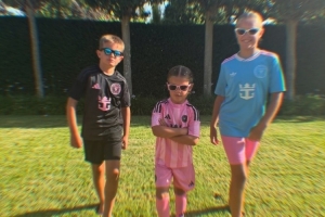 麗貝卡社媒曬出三個孩子的照片,孩子們都身穿邁阿密國際球衣。