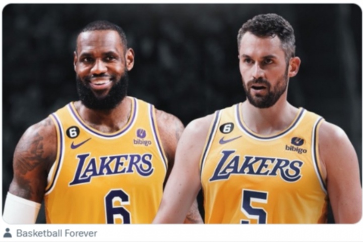 體育資訊08月06日訊 湖人媒體LakeShowYo更新動(dòng)態(tài),曬出詹姆斯和樂(lè)福的湖人合成圖,并寫道: