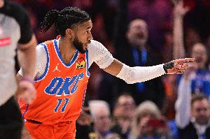 第一節(jié),雷霆攻防兩端壓制對手,單節(jié)以39-19領(lǐng)先籃網(wǎng)多達(dá)20分,雷霆射手以賽亞-喬首節(jié)飆中4記三分獨(dú)得12分。