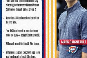 體育資訊01月20日訊 雷霆主帥戴格諾特鎖定全明星主帥!
