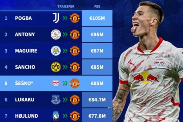 體育資訊08月07日訊 據(jù)德轉(zhuǎn)統(tǒng)計,塞斯科將成為曼聯(lián)隊史第四高轉(zhuǎn)會費成員,待附加條款觸發(fā)后。