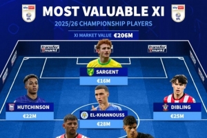 體育資訊8月8日訊 新賽季英冠今夜開(kāi)打,德轉(zhuǎn)列出了截至目前聯(lián)賽最貴11人陣,迪布林、哈欽森、埃爾哈努斯、貝利斯在列,11人總身價(jià)2.06億歐。
