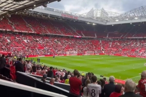佛羅倫薩門(mén)將德赫亞重返老特拉福德,他在場(chǎng)上進(jìn)行賽前熱身時(shí),全場(chǎng)球迷們?yōu)樗蜕险坡暋?/p>