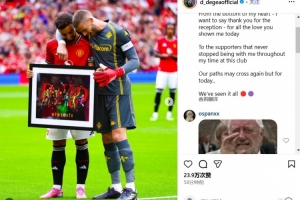 在社交媒體上,德赫亞寫道:對于我和我的家人而言,重返老特拉福德是一個(gè)神奇的時(shí)刻,這里是我的家。我打心底想說感謝你們今天的歡迎,感謝你們今天向我展示出的所有的愛!