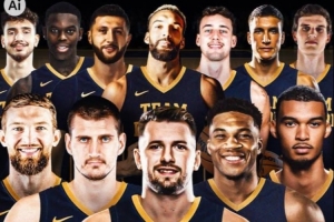 全歐洲球員陣容:東契奇、字母哥、約基奇、文班亞馬、小薩博尼斯、戈貝爾、小瓦格納、努爾基奇、博格丹、施羅德、申京、馬爾卡寧。