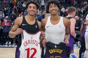本場最后時(shí)刻,快船換上卡梅隆-克里斯蒂,與哥哥馬克斯-克里斯蒂同場競技。賽后兩人交換球衣。