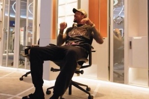 視頻中,科林斯坐在哈登和小卡更衣柜的旁邊顯得非常興奮,他說道:“這里都是大人物?!?/p>