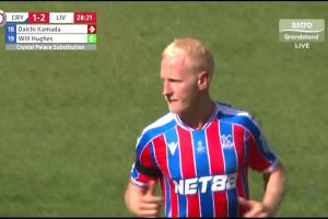 體育資訊08月10日訊 社區(qū)盾杯決賽,水晶宮對陣?yán)锲?,比賽?8分鐘,鐮田大地遭遇傷病無法堅(jiān)持,威爾-休斯替補(bǔ)登場。