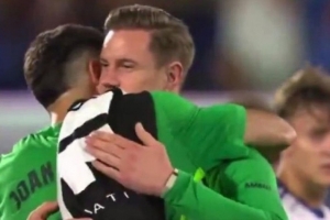 體育資訊8月11日訊 據(jù)《每日體育報(bào)》報(bào)道,巴薩隊(duì)長(zhǎng)特爾施特根在甘伯杯賽后和另一位巴薩門將霍安-加西亞擁抱。