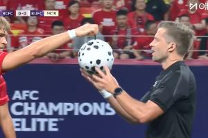比賽第14分鐘,萊切特向主裁反饋皮球破了,需要更換一顆。