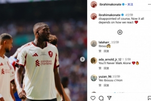 新賽季社區(qū)盾杯上周末結(jié)束,利物浦點(diǎn)球大戰(zhàn)不敵水晶宮,科納特賽后發(fā)文總結(jié),他寫道:當(dāng)然(對(duì)結(jié)果)感到失望,現(xiàn)在一切取決于我們?nèi)绾位貞?yīng)。