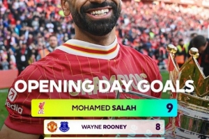 根據(jù)英超官方的數(shù)據(jù)統(tǒng)計(jì),利物浦邊鋒薩拉赫是英超歷史揭幕戰(zhàn)進(jìn)球最多的球員,達(dá)到了9球,在他身后的是魯尼、希勒、瓦爾迪和蘭帕德,他們都打進(jìn)了8球。