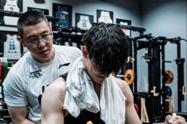 曾凡博繼續(xù)進(jìn)行背部康復(fù)訓(xùn)練,為月底前往布魯克林做準(zhǔn)備。圖中他在北京與TT運(yùn)動(dòng)表現(xiàn)體能館的長期訓(xùn)練師段然在一塊。他預(yù)計(jì)會(huì)為10月10日和12日在中國澳門舉行的NBA中國賽做好準(zhǔn)備。