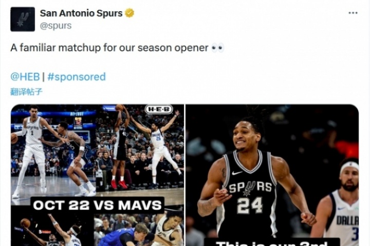 馬刺官推曬照表示:“揭幕戰(zhàn)又迎來了一個熟悉的對手???!?/p>