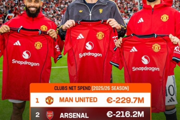 體育資訊08月13日訊 外媒LiveScore統(tǒng)計了夏窗目前為止歐洲足壇凈支出最多的五支俱樂部,曼聯(lián)、阿森納破2億歐領(lǐng)跑。