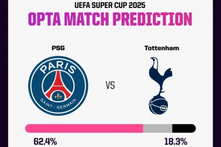 體育資訊08月13日訊 明晨3:00,歐洲超級杯,巴黎圣日耳曼vs熱刺。賽前,數(shù)據(jù)網(wǎng)站opta預(yù)測了歐超杯的勝者。