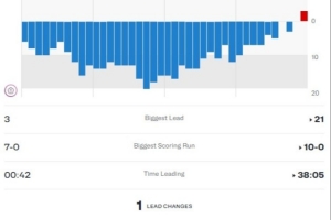 據(jù)統(tǒng)計,中國臺北全場領(lǐng)先了38分05秒,而伊朗最后時刻完成反超,全場領(lǐng)先優(yōu)勢只交換過1次,伊朗的領(lǐng)先時間僅有42秒。