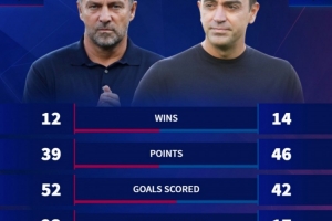 體育資訊1月20日訊 在本賽季西甲20輪過后,巴薩積39分位列第三。德轉(zhuǎn)也對比了弗里克與哈維在執(zhí)教巴薩前20場西甲戰(zhàn)績,具體如下: