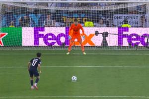 而熱刺前鋒特爾的罰點用時9.19秒,最終也偏出了球門。