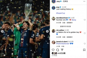 值得一提的是,前巴黎球隊貝克漢姆留言為巴黎點贊:Number one ??????