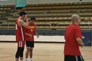 在備戰(zhàn)八強賽前的訓練中李昂教練單獨指導了王俊杰,