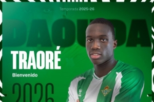 達(dá)烏達(dá)-特勞雷現(xiàn)年19歲,法國中場,去年夏天從尼斯加盟南安普頓,上賽季外租瓦朗謝納效力,共為該隊(duì)出戰(zhàn)27場法丙。今天,南安普頓官方宣布,達(dá)烏達(dá)-特勞雷租借加盟西甲貝蒂斯,租期一個(gè)賽季。