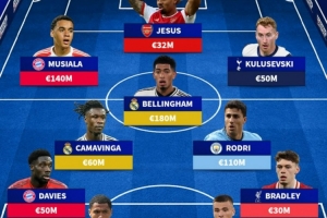 前鋒:穆西亞拉(拜仁)、熱蘇斯(阿森納)、庫盧塞夫斯基(熱刺)