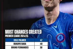 體育資訊12月25日訊?Football Insider統(tǒng)計,帕爾默是本賽季至今英超創(chuàng)造機會次數(shù)最多的球員。