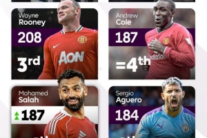英超官方數(shù)據(jù)顯示,薩拉赫現(xiàn)在已經(jīng)打入187個英超進球,在英超歷史射手榜上追平安迪-科爾,并列第四。