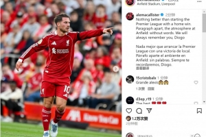 麥卡利斯特賽后在社交媒體上寫道:“沒有什么比以主場勝利開啟英超賽季更棒的了。安菲爾德的氛圍無以言表。我們將永遠(yuǎn)懷念你,迪奧戈(若塔)?!?/p>