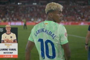 亞馬爾助攻拉菲尼亞頭槌先拔頭籌,補(bǔ)時(shí)階段亞馬爾破門(mén)鎖定勝局。巴薩取得聯(lián)賽開(kāi)門(mén)紅。亞馬爾被評(píng)為本場(chǎng)MVP。