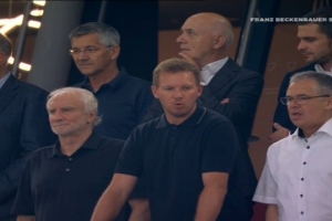 德國(guó)國(guó)家隊(duì)主帥納格爾斯曼來(lái)到了現(xiàn)場(chǎng),觀戰(zhàn)此役。