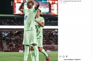 賽后,亞馬爾社媒曬照并配文寫道:10號的派對。